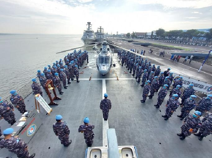 Surabaya-mediaindonesianews.com: Dalam rangka berkontribusi dalam misi perdamaian dunia, TNI Angkatan Laut mengirimkan Kapal Republik Indonesia (KRI) Sultan Iskandar Muda (SIM-367) bersama satu unit Helikopter AS 565 Mbe Panther dalam Satuan Tugas (Satgas) Maritim Task Force (MTF) TNI Kontingen Garuda XXVIII-M UNIFIL (United Nations Interim Force in Lebanon) Lebanon yang dilepas langsung oleh Panglima Komando Armada II Laksda TNI I N.G. Sudihartawan dengan didampingi Ketua Daerah Jalasenastri Armada II Ny. Ria Sudihartawan dari Dermaga Madura Mako Koarmada II, Ujung, Surabaya. Sabtu (27/02).